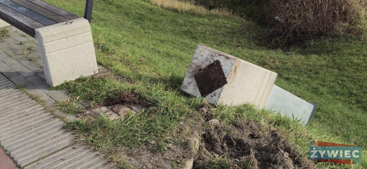 Zdjęcia Kolejny akt wandalizmu nad Jeziorem Żywieckim. Kosz przewrócony i wyrwany z podłoża - fotorelacja