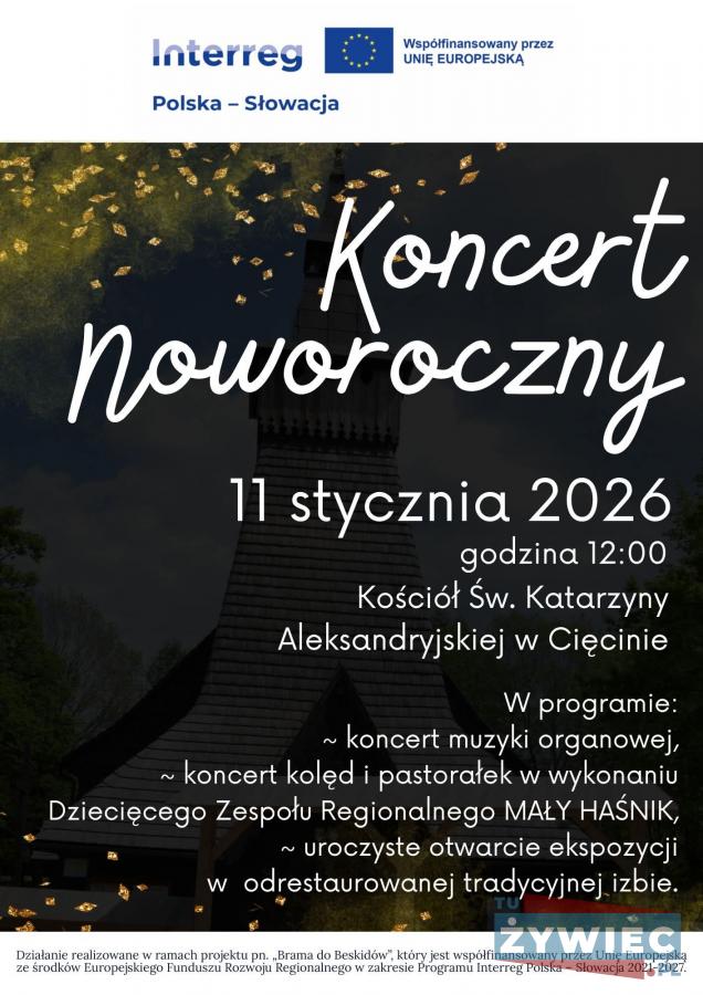 Zdjęcia przedstawiają wyjątkowe wydarzenie kulturalne - Koncert Noworoczny w Cięcinie. Uroczystość, realizowana w ramach międzynarodowego projektu, łączy sacrum z lokalnym folklorem, promując kulturę Beskidów. Publiczność miała okazję wysłuchać koncertu organowego oraz występu Dziecięcego Zespołu Regionalnego Mały Haśnik. Wydarzenie uwieńczone zostało otwarciem tradycyjnej izby, stanowiącej część projektu Brama do Beskidów. Inicjatywa, współfinansowana ze środków UE, miała na celu ocalenie historii regionu i wzmacnianie relacji poprzez kulturę i historię. Koncert Noworoczny przyciągnął mieszkańców i turystów, umożliwiając wejście w Nowy Rok w atmosferze lokalnej tradycji.