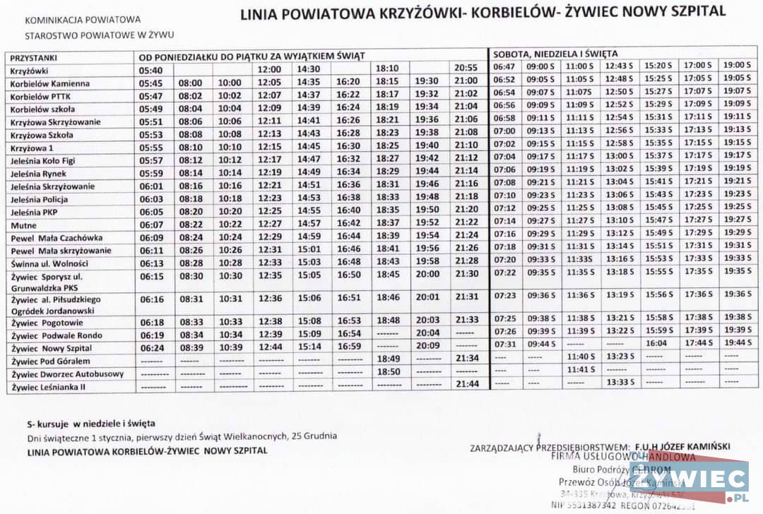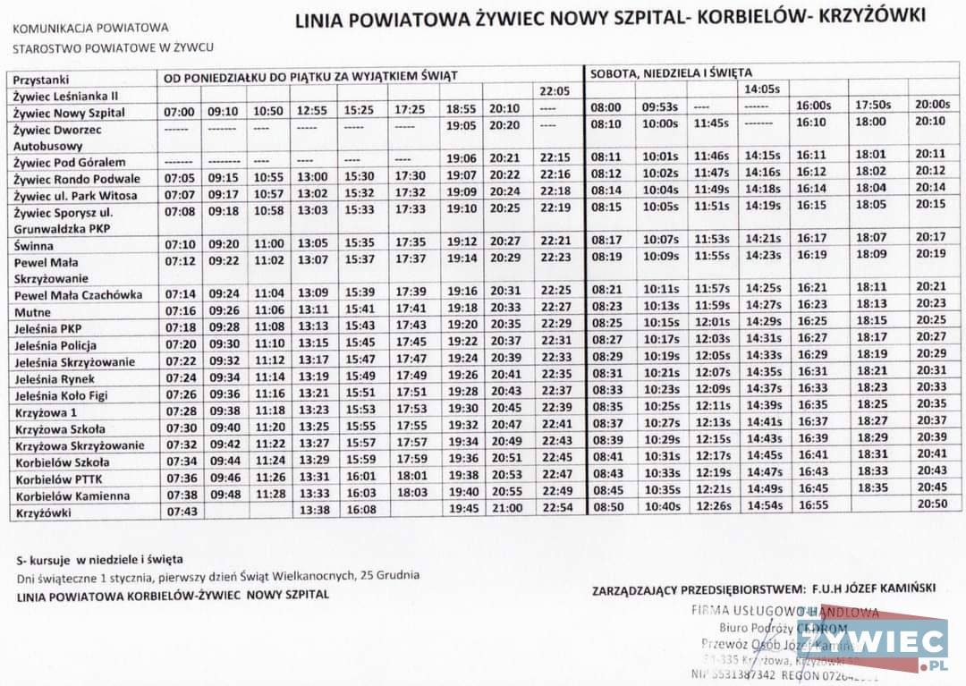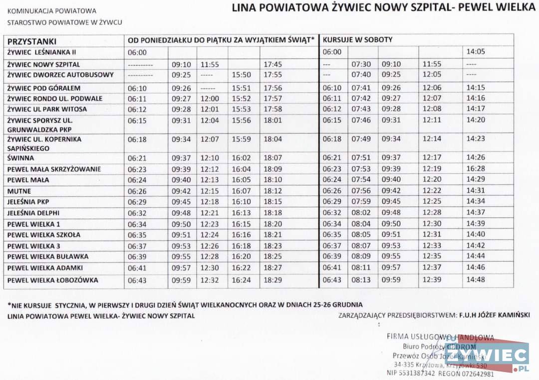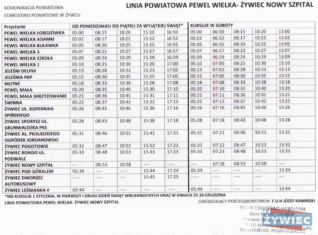 Rozklad jazdy busów Mustang Bus Żywiec I okolice