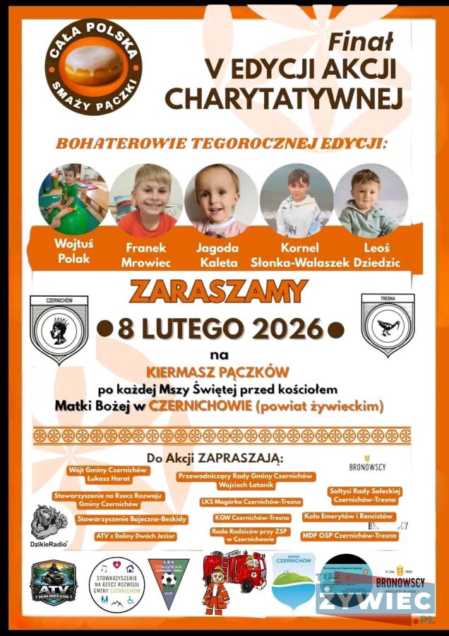 Lokalna społeczność gminy Czernichów zjednoczyła się w szczytnym celu, organizując charytatywny kiermasz pączków na rzecz dzieci potrzebujących wsparcia w leczeniu i rehabilitacji. Cały dochód z tego wydarzenia pomoże piątce małych Bohaterów w ich trudnej drodze do zdrowia. Działania wspierają liczne lokalne organizacje oraz władze gminy, zapewniając, że żadne dziecko nie zostanie pominięte. To doskonała okazja, by przełamać niedzielny deser i okazać wsparcie potrzebującym.