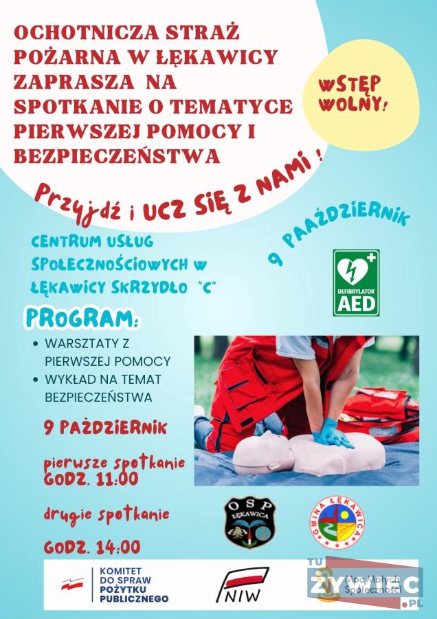 Ochotnicza Straż Pożarna w Łękawicy serdecznie zaprasza wszystkich mieszkańców na wyjątkowe wydarzenie poświęcone pierwszej pomocy i bezpieczeństwu. Spotkanie odbędzie się 9 października w Centrum Usług Społecznościowych w Łękawicy, skrzydło C. Zaplanowano warsztaty z udzielania pierwszej pomocy oraz wykład dotyczący bezpieczeństwa. Uczestnicy dowiedzą się, jak reagować w sytuacjach zagrożenia, jak wykonać resuscytację krążeniowo-oddechową, korzystać z defibrylatora AED i skutecznie pomagać poszkodowanym. Wydarzenie ma także wartość społeczną, zachęcając do budowania świadomości oraz lokalnych więzi. Udział jest bezpłatny, a organizatorzy serdecznie zachęcają do przyjścia całą rodziną. Bądź przygotowany, przyjdź i ucz się razem z OSP Łękawica!