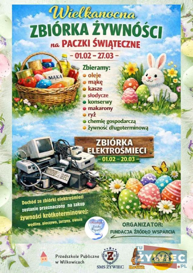 Zapraszamy do zapoznania się z galerią zdjęć z akcji charytatywnej zorganizowanej przez Fundację Źródło Wsparcia na zbliżające się Święta Wielkanocne. Podczas tej inicjatywy zbierane są produkty spożywcze o długim terminie ważności oraz elektrośmieci, które po utylizacji przekształcają się w świeże żywności. Lokalni partnerzy włączają się w akcję, aby wspólnie przygotować paczki świąteczne dla osób potrzebujących. Dzięki zaangażowaniu społeczności, akcja ma szansę przynieść ulgę osobom w trudnej sytuacji życiowej. Włącz się i wesprzyj tę piękną inicjatywę!